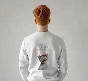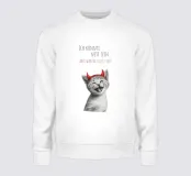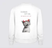 Questo gatto dice quello che tutti noi pensiamo a volte. Con il suo sorriso impertinente e le sue piccole corna rosse da diavolo, mette subito di buon umore; perfetto per chi ama l'umorismo, l'ironia e una dose di fiducia in se stesso. Il design moderno e minimalista colpisce per il suo chiaro disegno in bianco e nero e per l'accento di colore rosso; semplice, ma con un effetto wow. Il design minimalista fa sì che il gatto e lo slogan siano al centro dell'attenzione. Un must per tutti i fan dei gatti di carattere o per chi vuole mostrare il proprio lato sfrontato con stile.