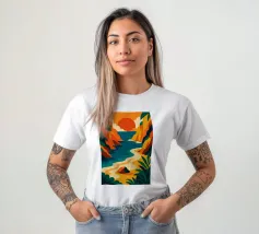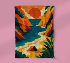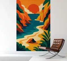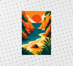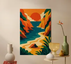 Immergetevi nel mondo vibrante di "Crique", un poster massimalista in cui le calde tonalità dell'arancio, della sabbia dorata e delle scogliere ocra incontrano l'intensità del blu laguna. Questa composizione grafica, ispirata ai tramonti tropicali, evoca sogni, calore e avventura. Lasciatevi trasportare da questa caletta segreta dai colori retrò-chic, perfetta per ravvivare un salotto, un ufficio o una stanza delle vacanze in casa. Un omaggio pop alla natura selvaggia ed elegante.