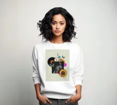Una nostalgica stampa d'arte a collage che unisce fascino vintage e romanticismo. Un grammofono ornato esplode di fiori vivaci e dischi in vinile, mentre una coppia che balla cattura la magia della musica senza tempo. Un'opera d'arte da parete perfetta per gli amanti della musica, per gli appassionati di arredamento retrò o per chiunque sia attratto dalla narrazione di storie sentimentali attraverso il design.