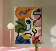 "Shapes dance, colors collide and modern abstraction is the art of energy, balance, and imagination."