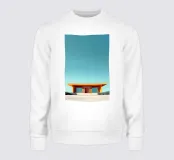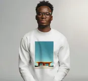 Una casa moderna e simmetrica si staglia audace sotto un cielo turchese infinito. Il vivido contrasto tra la facciata arancione bruciato e il cielo fresco e aperto evoca serenità, precisione e calore. Questo ritratto architettonico celebra il minimalismo, l'equilibrio e la quiete di un pomeriggio assolato.