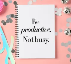 Il design semplice ed elegante "Siate produttivi. Non occupato". ispira maggiore efficienza e concentrazione. Il carattere minimalista e il chiaro layout in bianco e nero lo rendono un motivo perfetto per gli spazi di vita e di lavoro moderni. Ideale come murale, tazza o cuscino, questo disegno non è solo decorativo, ma serve anche come promemoria quotidiano per agire con saggezza e usare il tempo in modo saggio. Un'idea regalo stimolante per chiunque apprezzi la produttività e lo stile.