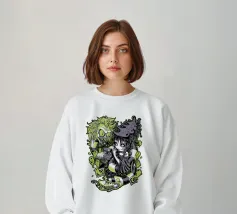 Una misteriosa demonessa con una benda e seducenti labbra rosse domina questa composizione oscuramente erotica. L'estetica grunge ricorda i manifesti punk degli anni '80, mentre la scritta "Spooky" in rosso sangue rafforza l'atmosfera di Halloween. I contrasti in bianco e nero con accenti rossi mirati creano una tensione drammatica. Questo provocatorio mix di gotico e street art trasforma la moda in dichiarazioni ribelli, perfette per chiunque ami il lato oscuro!