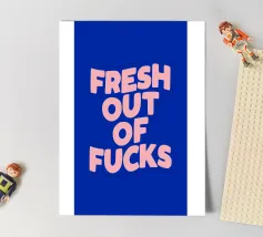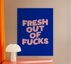 Abbracciate il vostro lato sfrontato con la nostra esilarante stampa artistica "Fresh Out of Fucks". Questo design accattivante è caratterizzato da una giocosa scritta rosa disegnata a mano su un elegante sfondo blu navy, che cattura perfettamente lo stato d'animo di "chi ha finito tutto". Ideale per chi ha un senso dell'umorismo audace e un'inclinazione per l'arredamento impertinente, questo pezzo versatile aggiunge un tocco di personalità a qualsiasi spazio. Disponibile su diversi prodotti, dall'arte da parete agli articoli di moda, è il regalo perfetto per gli amici che amano le risate o un regalo per se stessi quando ci si sente particolarmente infastiditi. Lasciate che questa stampa spiritosa parli di voi
