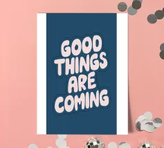 Portate un tocco di ottimismo nel vostro spazio con questa incantevole stampa d'arte, che riporta la scritta "Good Things are Coming" (Le cose belle stanno arrivando) in rosa tenue, disegnata a mano su uno sfondo blu pastello. Il design giocoso irradia positività e calore, rendendolo un regalo appropriato per compleanni, inaugurazioni o per chiunque abbia bisogno di incoraggiamento. Perfetta per ravvivare camere da letto, uffici o angoli creativi, questa arte murale edificante unisce lo stile contemporaneo a un messaggio dolce e pieno di speranza. Aggiungete un tocco di colore e di allegria al vostro arredamento con questa stampa unica e piacevole.