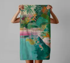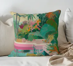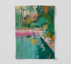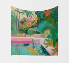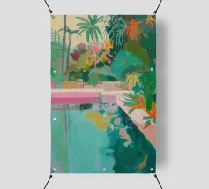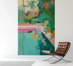 Scoprite la rilassante piscina mediterranea e le illustrazioni tropicali che portano in casa vostra il fascino delle vacanze estive con palme e fiori esotici!