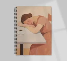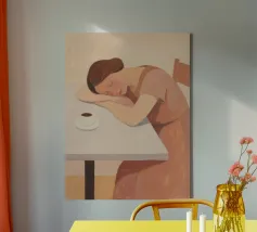 Donna addormentata sul tavolo con un bicchiere di caffè con pittura fauvismo stile arte