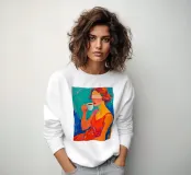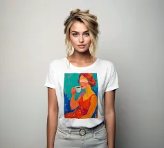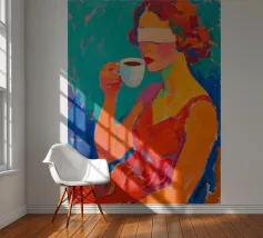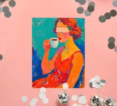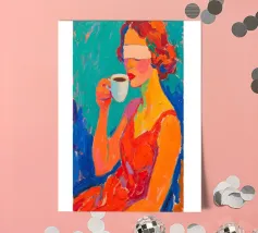 Donna che beve con gli occhi ciechi con pittura fauvismo stile arte