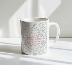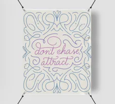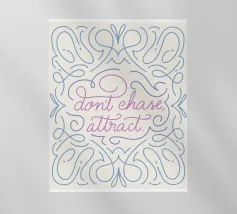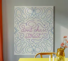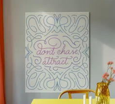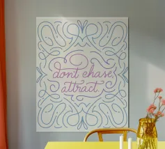 Citazione ispiratrice in lettere ed elementi floreali nei colori blu e rosa