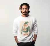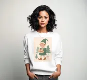 Questo elfo sorridente che tiene in mano un regalo incartato cattura il cuore della donazione natalizia. Disegnata in tenui colori pastello con un'estetica nordica, è una stampa adorabile per i bambini, le famiglie o le collezioni di arte murale festiva.