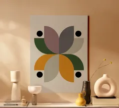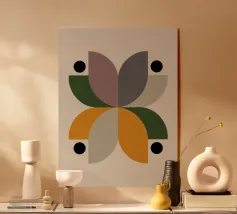 Poster moderno con forme geometriche in caldi colori autunnali. Questo disegno astratto dona equilibrio e eleganza autunnale alle vostre pareti - perfetto per il soggiorno, l'ufficio o come decorazione stagionale.