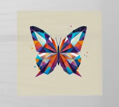 Una farfalla dalle forme geometriche che crea un'esplosione artistica con colori vivaci. Perfetto per chi apprezza la bellezza della natura in forma astratta.Farfalla astratta dai colori vivaci