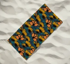 Modello senza cuciture disegnato a mano con fiori di conifera e farfalle monarca.