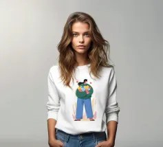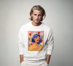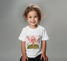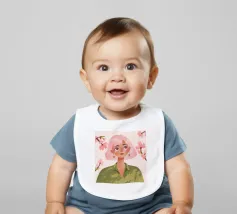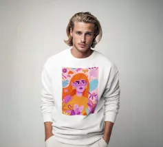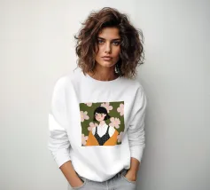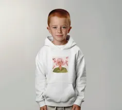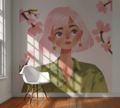 Il dipinto raffigura una persona con capelli corti e rosa su uno sfondo di fiori di ciliegio. La persona indossa una camicia verde e la composizione complessiva emana un senso di crescita e di sicurezza.