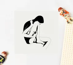 Un'opera d'arte dalle linee minimaliste raffigurante una figura femminile seduta, ripiegata su se stessa in un momento di tranquilla riflessione. Il gioco di forme nere decise e delicate linee di contorno crea intimità e forza, rendendo questo pezzo un'aggiunta sorprendente a qualsiasi interno moderno. Perfetto per gli spazi che abbracciano l'eleganza, la calma e il minimalismo contemporaneo.