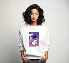 La gioia dei gatti, la bellezza dei fiori e la bontà del cibo in un unico disegno! Questo design unico e adorabile presenta simpatici gatti tra fiori colorati e cibo delizioso.