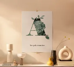 L'alfabeto floreale personalizzabile A combina la leggerezza dei fiori con una tipografia moderna. Fiori delicati incontrano linee chiare: un design che unisce naturalezza ed eleganza. Ideale come regalo personalizzato per una nascita, un battesimo o un matrimonio, o come elemento di stile per la vostra casa. Personalizzate il nome o la frase e rendetelo davvero unico. Perfetto per interni scandinavi, minimalisti o boho.