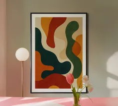 Celebrate la libertà artistica con "Flow in Color", un'esplosione astratta di pennellate audaci e forme organiche. Questo pezzo gioca con toni vibranti come terracotta, verde acqua intenso, senape e arancione bruciato. Perfetto per aggiungere energia e movimento espressivo a qualsiasi spazio moderno. Lasciate che sia il colore a fare da padrone
