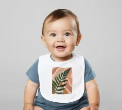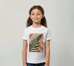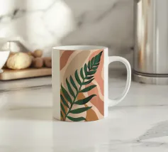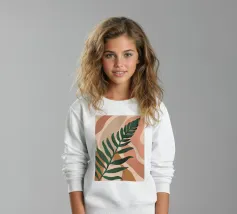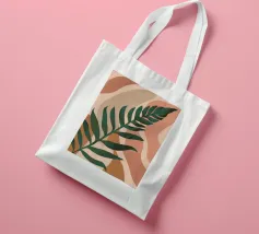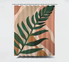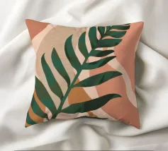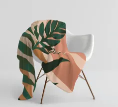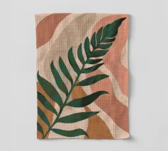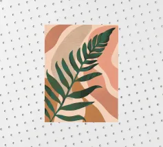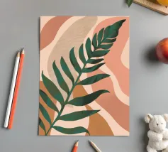 Un'illustrazione semplice ed elegante di una singola grande foglia di palma su uno sfondo morbido e strutturato a due tonalità. Lo stile è minimalista e rilassante.
