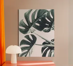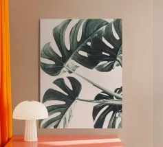 Questo elegante disegno di foglie di monstera porta la natura tropicale in casa vostra. Le foglie verde intenso della monstera aggiungono un'atmosfera fresca ed esotica a qualsiasi ambiente. Perfetto come murale, su tazze o cuscini, il motivo minimalista si abbina perfettamente agli stili di interni moderni, scandinavi o di ispirazione boho. È il design ideale per tutti gli amanti delle piante e fornisce un accento naturale e rilassante a qualsiasi ambiente.