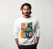 Una composizione astratta audace ed energica in stile cubista, caratterizzata da una festa di forme geometriche, motivi e colori vivaci. L'opera è un'esplorazione dinamica e giocosa della forma e del colore.