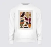 Uccelli stilizzati disposti in una tranquilla composizione geometrica. I colori caldi della terra e le forme semplici creano un equilibrio tranquillo e un ritmo gentile.
