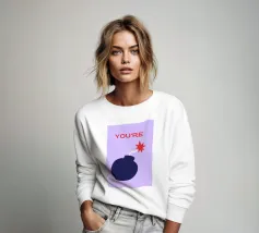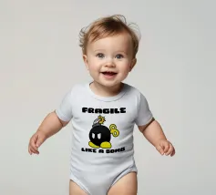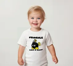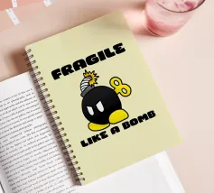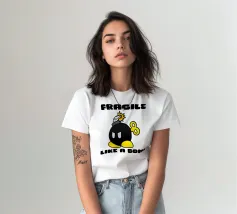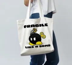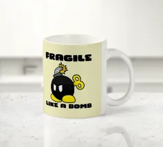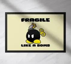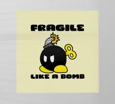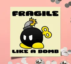 Questo disegno presenta una simpatica bomba giocattolo con piedi gialli e un'espressione determinata, accompagnata dalla frase "Fragile come una bomba!". Un'arte che unisce umorismo e creatività per illustrare il contrasto tra fragilità e potenza, con un design ispirato all'universo geek e nostalgico. Perfetto per i giocatori, gli appassionati di cultura pop e tutti coloro che apprezzano i messaggi umoristici e d'impatto.