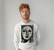 Ritratto di donna in linoleografia, stampato a mano su carta antica del 1850. Ispirata all'estetica della calligrafia d'epoca, questa creazione fonde tradizione e modernità, abbracciando delicatamente i tratti femminili. Un'opera d'arte singolare, che unisce l'eredità del passato a un look contemporaneo, ideale per un ambiente unico e artistico.