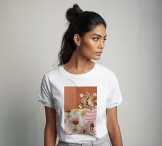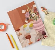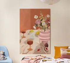 Affascinante natura morta, con una mano che versa acqua in un bicchiere. Un vassoio di uva si trova all'ombra di un grande vaso con un enorme mazzo di fiori di campo.