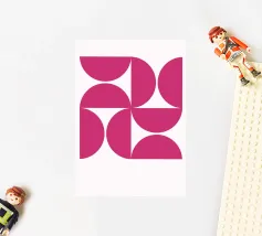 Abbracciate la vibrante energia di questa stampa d'arte astratta, un omaggio contemporaneo all'estetica del Mid-Century Modern e del Bauhaus. Questo pezzo accattivante presenta una disposizione simmetrica di semicerchi e quarti di cerchio fucsia, creando un motivo geometrico giocoso ma sofisticato su uno sfondo bianco pulito. L'uso audace del colore e delle forme semplici esemplifica una sensibilità di design senza tempo che aggiunge un tocco di moderna eleganza a qualsiasi spazio. Realizzata con meticolosa precisione digitale, questa stampa vanta un'impressionante risoluzione di 7000x5000 pixel a 300 dpi, assicurando linee eccezionalmente nitide e un'ottima qualità di stampa.