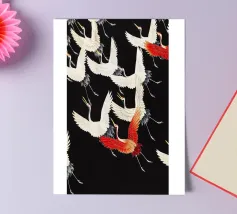 Il Furisode con una miriade di gru volanti (1910-1920) è uno straordinario esempio di arte tessile giapponese del primo Novecento. Il furisode, che si distingue per le sue maniche lunghe e fluenti, veniva tradizionalmente indossato dalle giovani donne nelle occasioni di festa. Questo squisito disegno presenta gru in volo, un motivo che nella cultura giapponese simboleggia la longevità, la fortuna e gli inizi di buon auspicio. Le delicate composizioni di motivi, movimenti e colori riflettono la raffinata maestria artigianale e il significato culturale. Elegante, senza tempo e profondamente simbolica, quest'opera d'arte incarna l'armonia tra bellezza e tradizione.