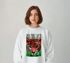 Una composizione audace e grafica che fonde insieme i motivi di una tigre e di un leopardo. Lo stile è moderno, potente e alla moda.