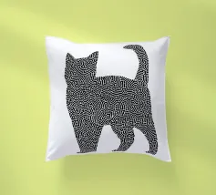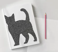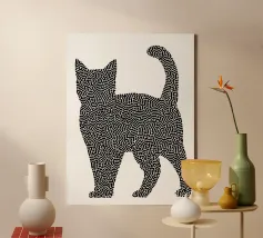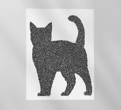 L'ombra di un gatto pieno di vita: Questo motivo gioca con la tensione tra una silhouette chiara e un disegno organico a labirinto. Lo stile ricorda la line art di Keith Haring, ma è più sottile, più giocoso, quasi meditativo. Le innumerevoli microforme invitano a soffermarsi, creando dinamismo in una situazione di stasi. Una dichiarazione visiva per gli spazi creativi e gli amanti dei gatti, in audace equilibrio tra ordine e caos.