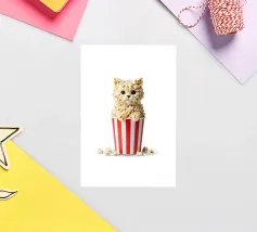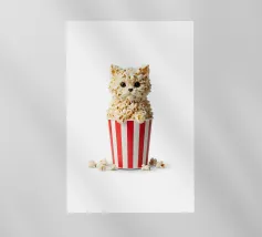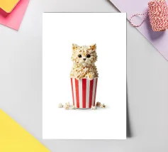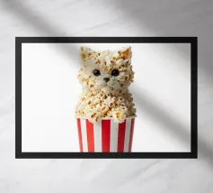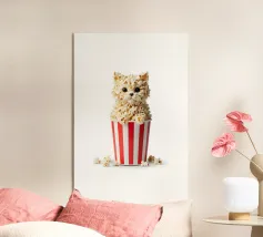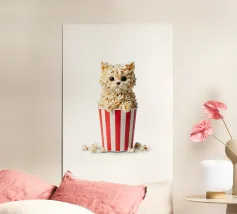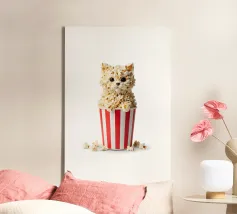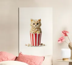 Questa incantevole opera d'arte presenta un irresistibile gatto popcorn seduto all'interno di un classico secchiello a strisce bianche e rosse, unendo la creatività giocosa a una stravagante arte alimentare. Ogni soffice chicco di popcorn forma l'adorabile sagoma del gatto, con tanto di occhi espressivi e dolci dettagli che gli danno vita. Perfetto per gli amanti degli animali, degli snack e delle illustrazioni stravaganti e fantasiose, questo disegno aggiunge un tocco divertente e allegro a qualsiasi parete, rendendolo ideale per l'arredamento della casa, delle camere dei bambini o per idee regalo uniche.