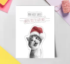 Preparatevi a una dose extra di allegria natalizia! Questo motivo porta l'allegria festosa direttamente a casa vostra con una strizzatina d'occhio. Il simpatico gattino con il suo cappello natalizio rosso emana puro fascino e dimostra che le cose possono essere piuttosto magiche anche senza Babbo Natale. Il design moderno e minimalista fa sì che il motivo non appaia mai kitsch, bensì fresco, elegante e con un tocco di umorismo. Questa illustrazione è perfetta per chi ama il Natale ma lo preferisce originale e un po' più sfacciato.