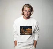 Una festosa immagine invernale che cattura la magia della stagione natalizia: una giostra illuminata gira su una piazza innevata mentre fiocchi di neve cadono delicatamente dal cielo notturno. Accanto ad essa si erge un albero di Natale magnificamente decorato, le cui luci scintillano a tempo con la giostra. La gente si gode l'atmosfera allegra, i bambini ridono e c'è la neve su una panchina: un momento di pura gioia natalizia in un'atmosfera pittoresca.