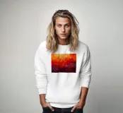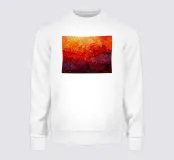 Un vibrante dipinto astratto composto da pennellate ricche e strutturate che fondono gialli, arancioni e rossi profondi in toni cremisi scuri. La superficie a impasto stratificato crea un senso di movimento e calore, evocando l'energia di un orizzonte incandescente o di un paesaggio fuso. Le audaci transizioni di colore e le pennellate espressive ne fanno un'opera d'arte contemporanea di grande impatto visivo.