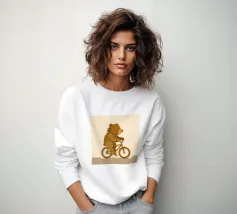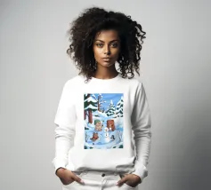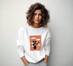 Un allegro orso arrostisce un marshmallow su un fuoco da campo, circondato da pini, trasmettendo il messaggio "Vai fuori". Lo stile semplice e giocoso e la palette di colori caldi promuovono le gioie delle avventure all'aria aperta.