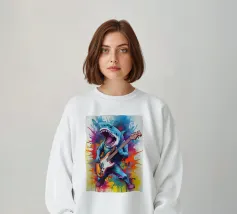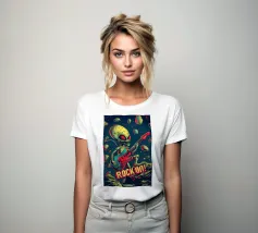 Questa visione fantascientifica psichedelica combina la nostalgia dei film di serie B con la ribellione del rock'n'roll. La palette di colori vintage, menta e corallo, ricorda le riviste pulp degli anni Cinquanta, mentre l'estetica da fumetto richiama lo spirito underground di Robert Crumb. L'alieno che suona la chitarra incarna la passione universale, un omaggio umoristico alla sobrietà del rock. Perfetto per gli amanti della musica, del vintage e per tutti coloro che credono che la vera arte possa rompere i confini e collegare le galassie.