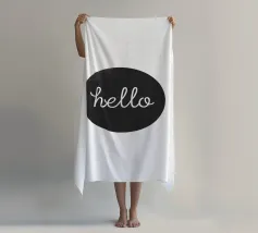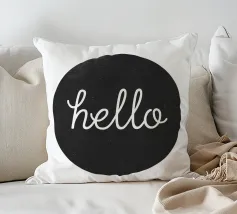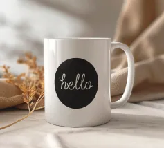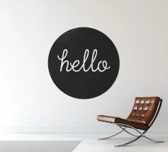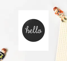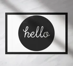 Questo disegno semplice e invitante, con la parola "hello" in un'elegante scritta a mano su sfondo nero, dona un tocco caldo e moderno a qualsiasi casa. Perfetto come murale, tazza, cuscino e altro ancora, irradia cordialità e apertura e accoglie ogni ospite con un accento affascinante. Questo motivo senza tempo è ideale per un arredamento minimalista o moderno ed è un'ottima idea regalo.