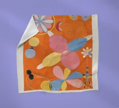 Questa vivace stampa d'arte presenta "The Ten Largest (No.4)" di Hilma af Klint, un'accattivante opera astratta del 1907. Su un caldo sfondo arancione, la composizione è piena di grandi forme organiche e geometriche sovrapposte in una tavolozza di rosa, gialli, blu e bianchi, che creano un senso di energia giocosa e di vita nascente. Intricati motivi floreali e linee vorticose aggiungono un'estetica dinamica e simbolica. Firmata "H. af Klint", quest'opera mostra la visione spirituale e astratta pionieristica di Klint, che esplora i temi della crescita e dello sviluppo. Questo poster digitale di alta qualità (7000x500