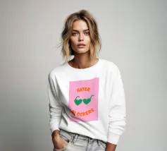 Un cuore stilizzato con fiamme all'interno è accompagnato dal testo in grassetto "Hotter Than Your Future". Il design è caratterizzato da una tavolozza di colori rossi e bianchi che conferiscono un contrasto sorprendente.