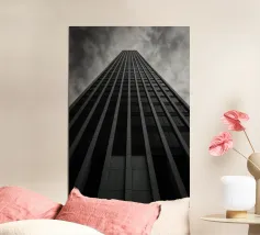 Houston svetta nel cielo, impassibile e sovrana. Una torre infinita, catturata in un drammatico angolo basso, taglia le nuvole. Questo poster trasuda verticalità, potenza e modernità. Una scelta potente per un design urbano radicale.