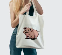 Un allegro maiale dei cartoni animati si erge con la frase "I HAM WHAT I HAM" su uno sfondo marrone. Il gioco di parole sottolinea l'atteggiamento gioviale del maiale.