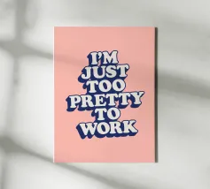 I'm Just Too Pretty to Work è una stampa tipografica di ispirazione retrò che aggiunge un tocco giocoso a qualsiasi ambiente. Caratterizzato da audaci scritte bianche e blu su un moderno sfondo color pesca, questo design accattivante unisce il fascino vintage allo stile contemporaneo. Perfetto per coloro che apprezzano un po' di stile e di umorismo nell'arredamento. Ideale per la camera da letto, l'ufficio o qualsiasi altro luogo in cui sia necessario ricordare la propria favolosa personalità. Stampa di alta qualità che sicuramente susciterà conversazioni e farà sorridere.