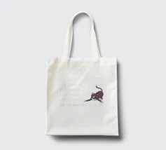 Un design giocoso presenta un gatto dei cartoni animati con una didascalia umoristica sull'essere maldestri, incolpando il pavimento, il tavolo, le sedie e le pareti per gli incidenti.