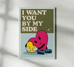 Il mio cuore è tuo e il tuo è mio" è forse il modo migliore per descrivere la simbiosi di affetto, amicizia e amore espressa in questa illustrazione a fumetti. Per grandi e piccini, per la camera dei bambini o per qualsiasi altra parete.