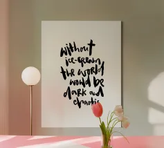 Scrittura a mano: "Senza gelato il mondo sarebbe buio e caotico".