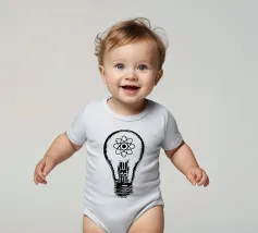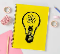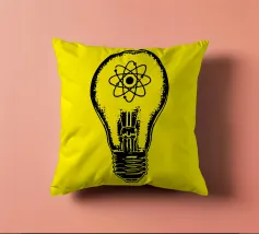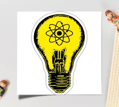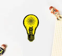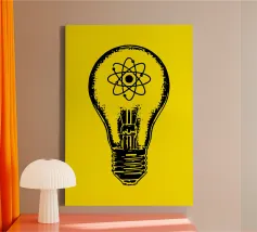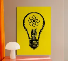 Una lampada classica, disegnata con linee nere, con un atomo disegnato al centro del vetro su sfondo giallo. Questo design combina la semplicità di una lampada tradizionale, che rappresenta idee e innovazione, con il simbolo dell'atomo, che fa riferimento alla scienza e alla conoscenza profonda. Questo design è il regalo ideale per gli appassionati di scienza, gli studenti, gli insegnanti e i professionisti di fisica, chimica e tecnologia.