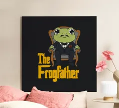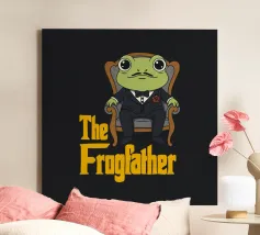 Una rana ben vestita siede come un vero boss della mafia, indossando uno smoking e una rosa rossa, in un'intelligente strizzata d'occhio a Il Padrino. Questa parodia mescola le vibrazioni del cinema classico con un'irresistibile simpatia. Perfetta per gli amanti del cinema, per i fan delle rane e per tutti coloro che amano una rivisitazione intelligente e divertente di film iconici.